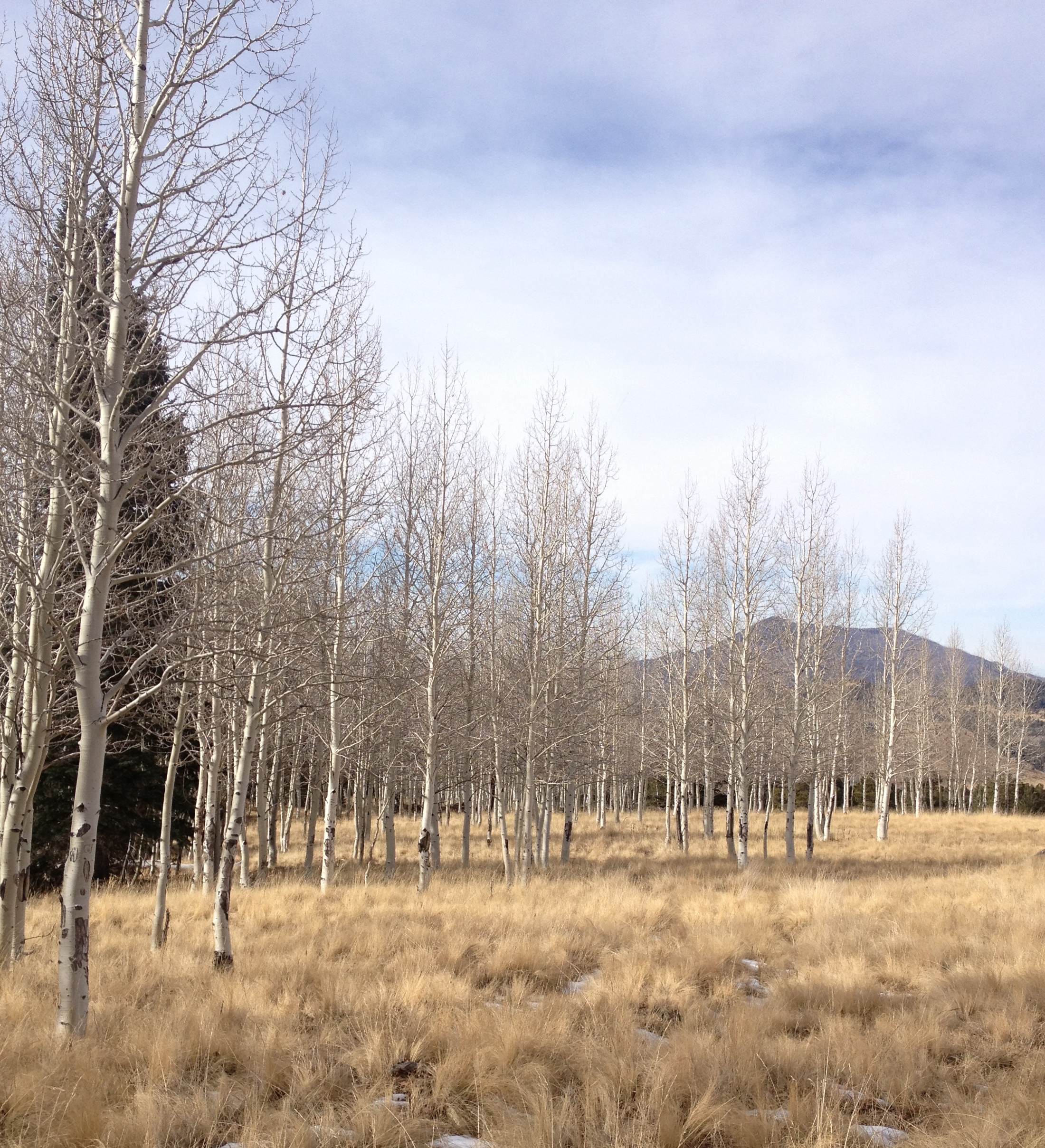 Too early for skiing but the white aspen in the field of yellowed grasses made for a beautiful early winter’s day. Mt Humphreys welcomes skiers in the winter and hikers the rest of the year.