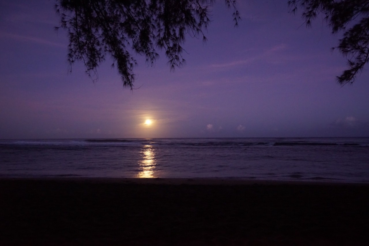 When I got up this morning hoping to catch the morning sky, I had no idea I would be met with this breathtaking scene. The moon was setting on the horizon at Ke’e Beach and the mix of the emerging dawn’s light made for a spectacular scene.