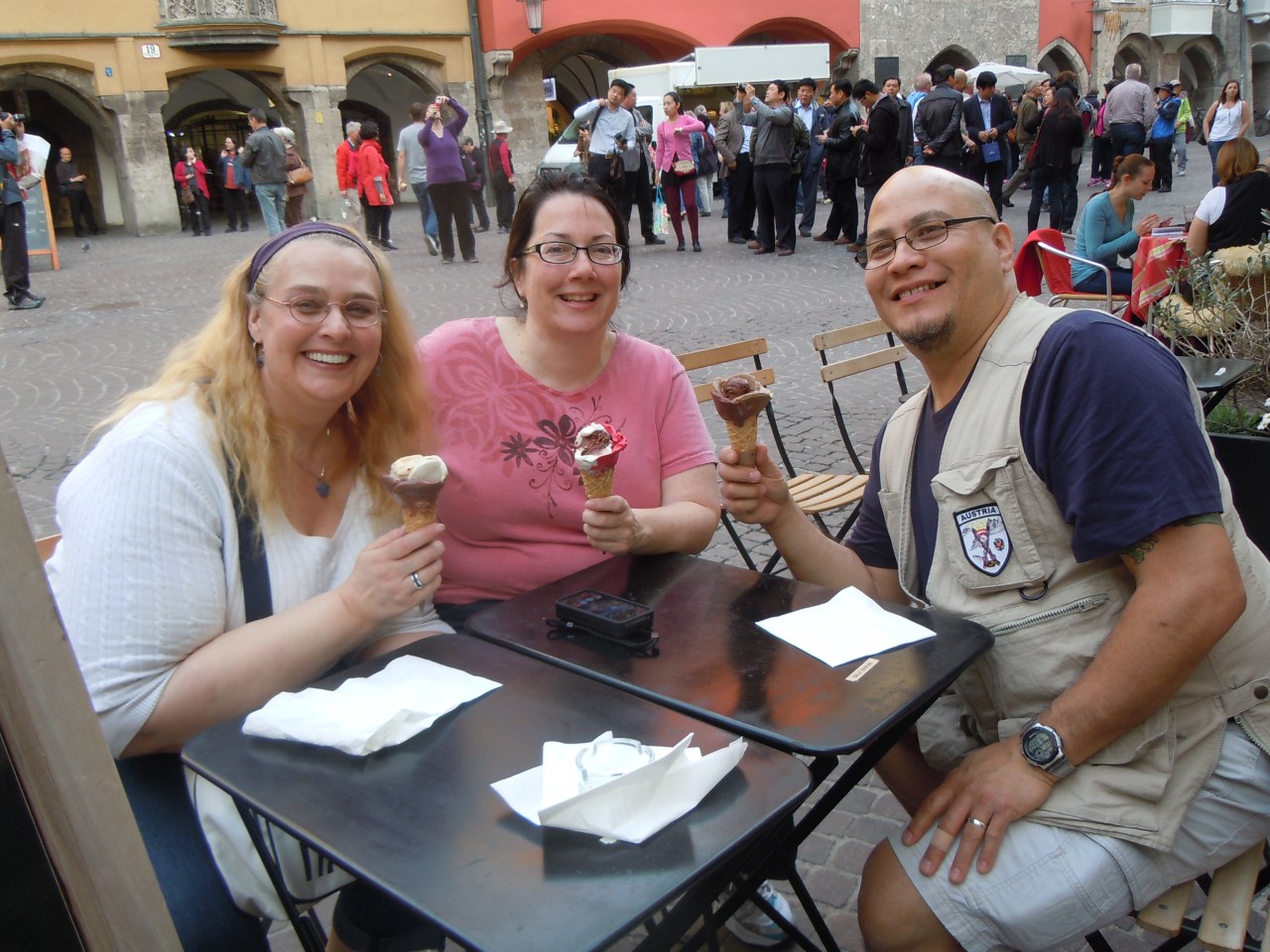 This was a lot of fun to enjoy ice cream presented as a flower atop an ice cream cone at Amorino’s in Innsbruck. I loved the idea of outdoor seating in the courtyard; on chilly days some establishments provided blankets for an outside dining experience.