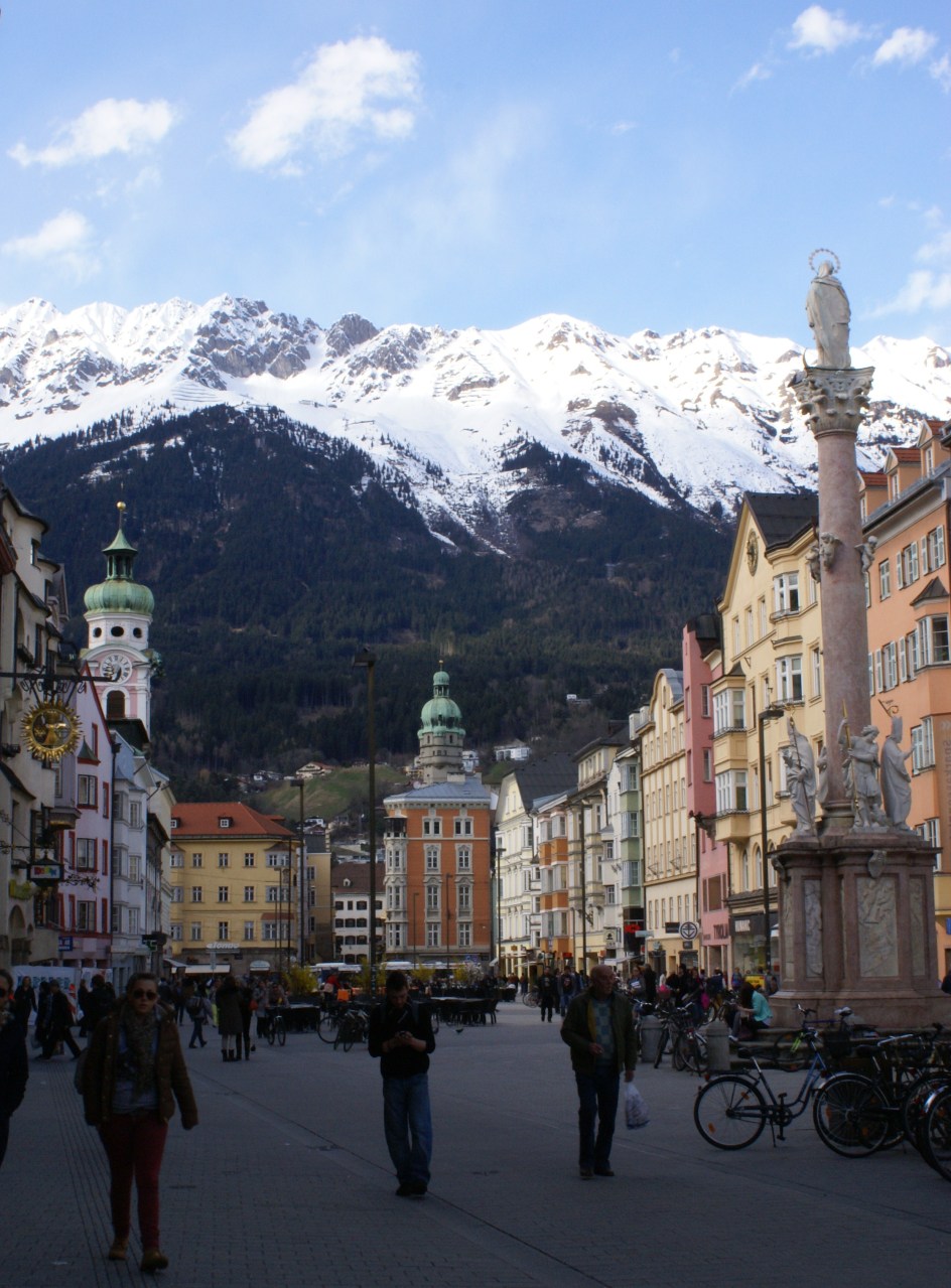 My cousin’s apartment was just down the street from this amazing courtyard in historic Innsbruck center so this was our first stop after a very long journey from Boston. I was in awe of the majestic mountain scene layed before us as we rounded the street corner.