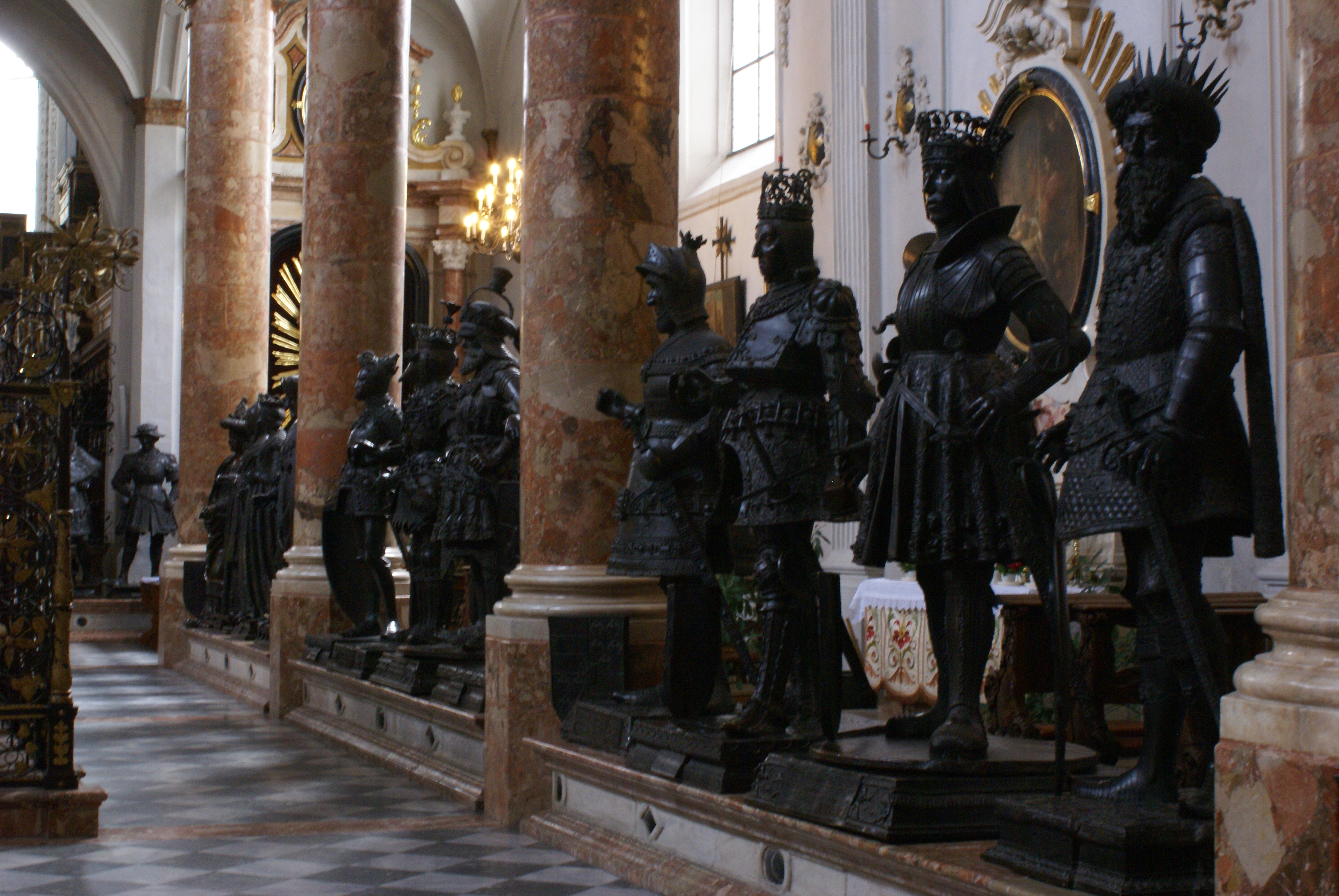 These bronze statues guard the cenotaph of Emperor Maximillian I. The statues are said to be of ancestors, relatives and heroes. Personally, I felt like I was in the Hall of Statues scene from The Chronicles of Narnia’s “The Magician’s Nephew.” I was waiting for a church chime to ring at any moment and the statues would step down from their pedestals. I was a bit of a child in this church, I must admit. I don’t know whether it was due to the feeling I was being watched by the statues, the solemn feel of this gothic church or from sheer exhaustion but I experienced a fit of giggles that lent me admonishing glares from the church attendants.