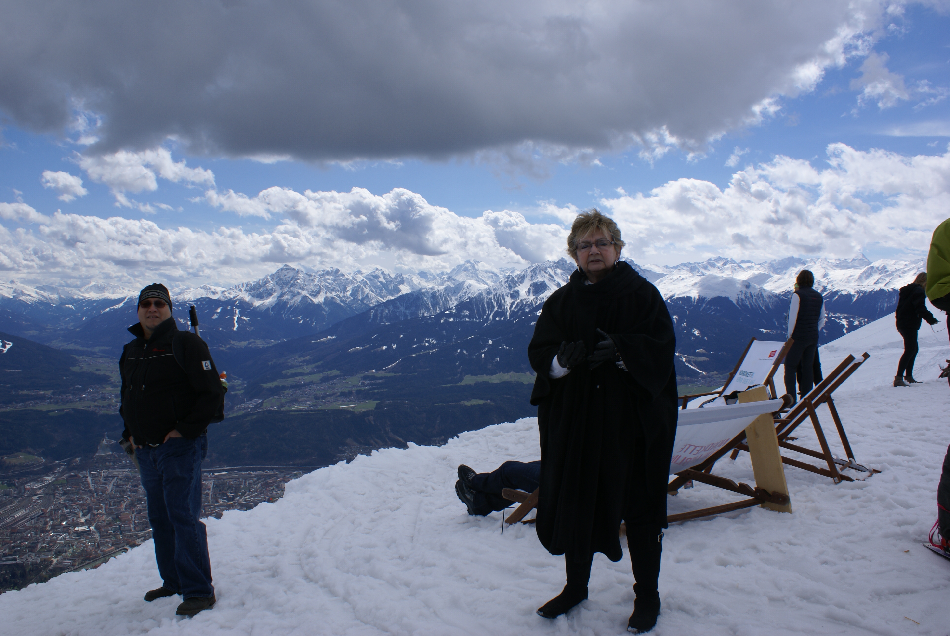 My mom, who is afraid of heights, ventured as close to the edge as she dared and asked me to take a photo of her throwing a snowball! She was so happy that she braved the cable car ride to the top of Hafelekar.
